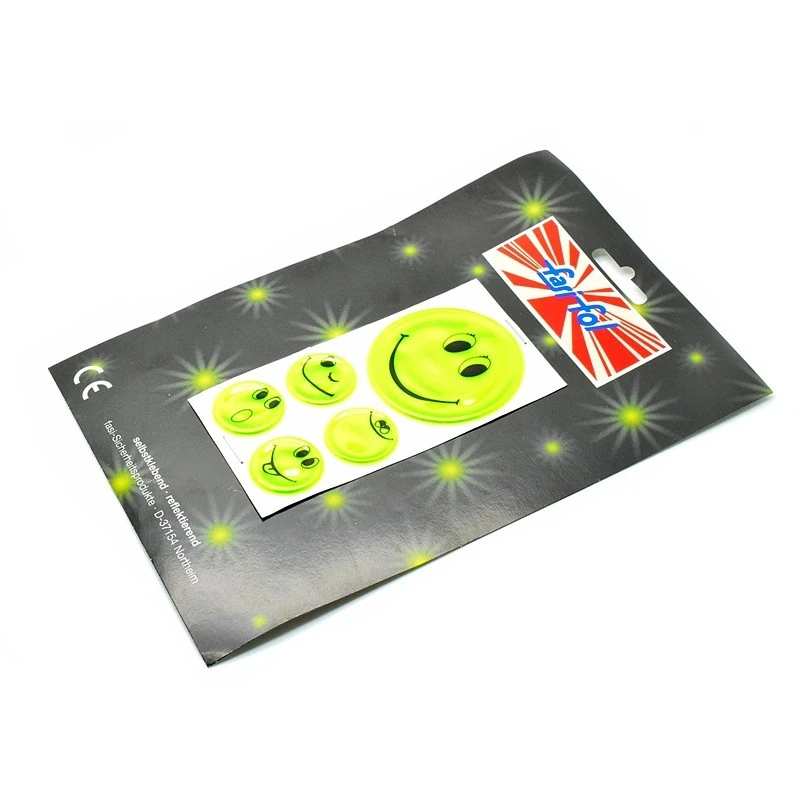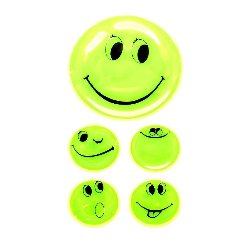 Planche d’autocollants rond en forme de Smiley pour la sécurité des enfants par temps sombre.