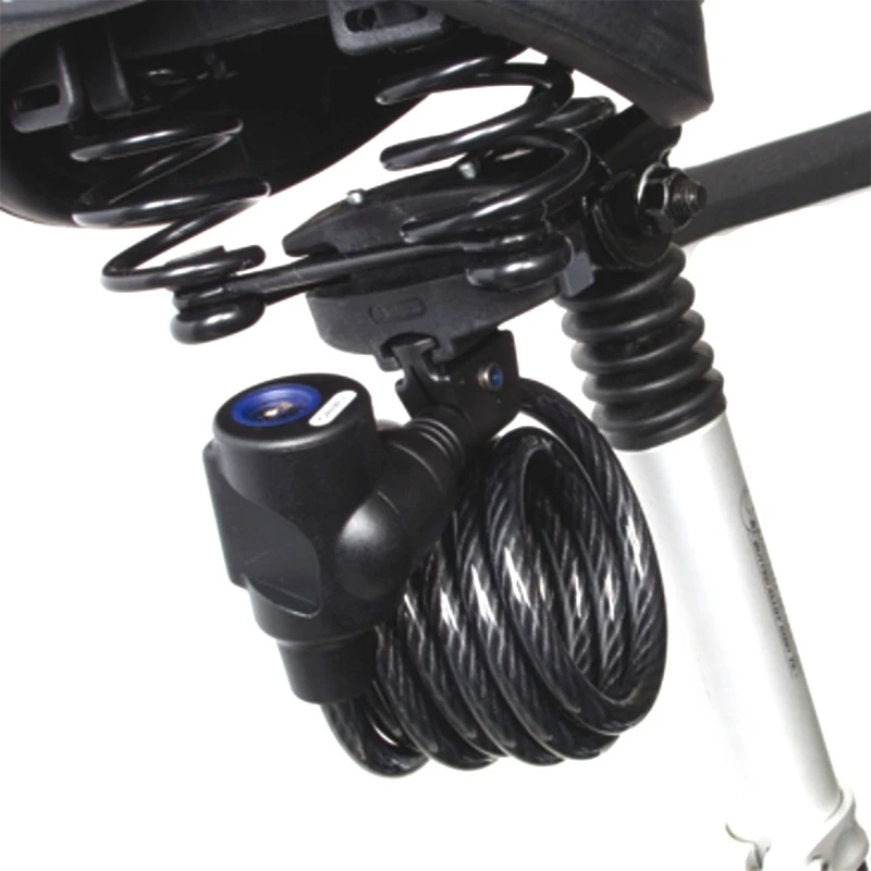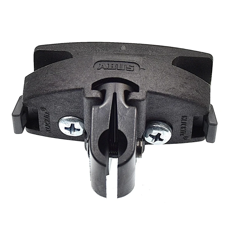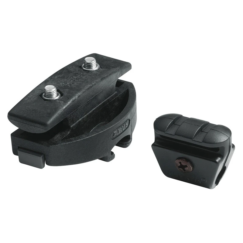 Cette attache de la marque ABUS permet le transport des sacoches et antivols à câbles aux rails de la selle du vélo.