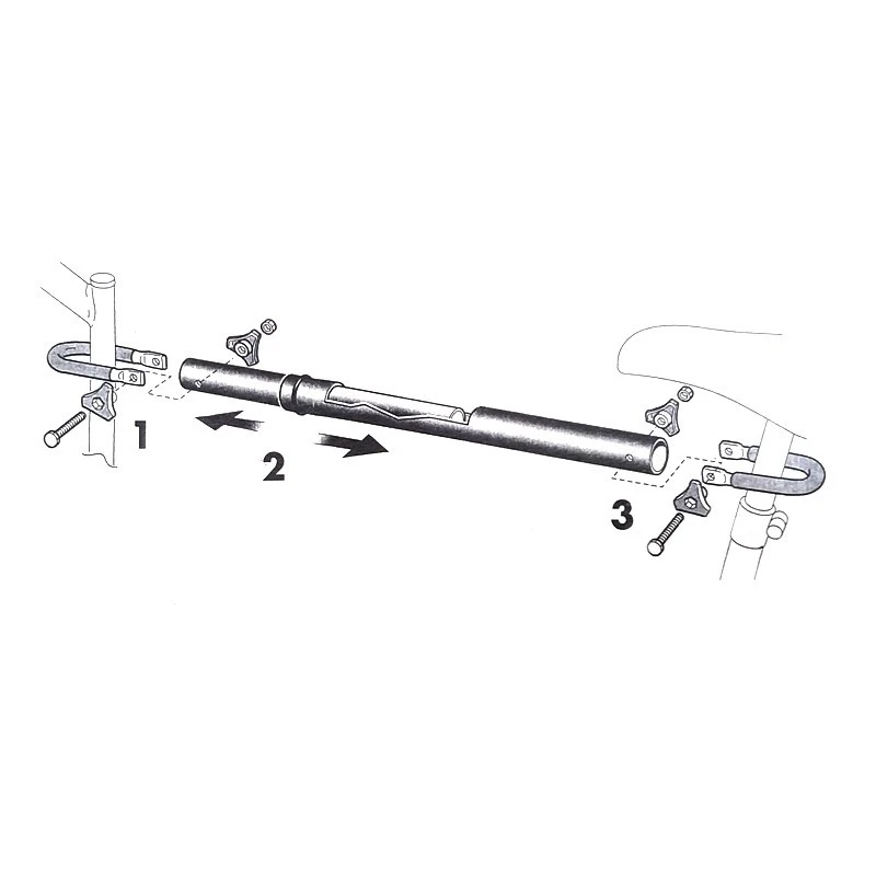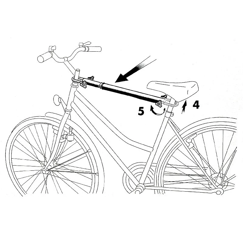 Cette barre adaptatrice pour vélo dame vous permet rapidement et simplement d’installer un vélo de femme sur un porte vélo de voiture. La barre se fixe entre la tige de selle et le guidon.