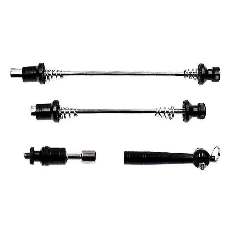 Ce kit de 4 pièces antivol en acier et aluminium traité permet de sécuriser les pièces amovibles de votre bicyclette contre le vol tel que les roues et la selle en milieu urbain et suburbain.