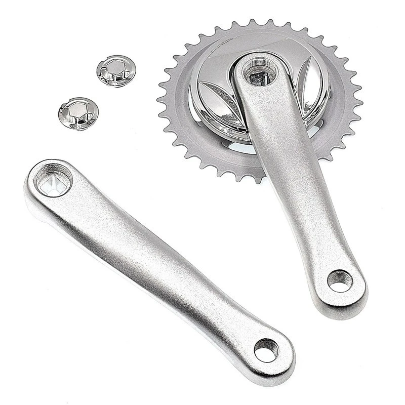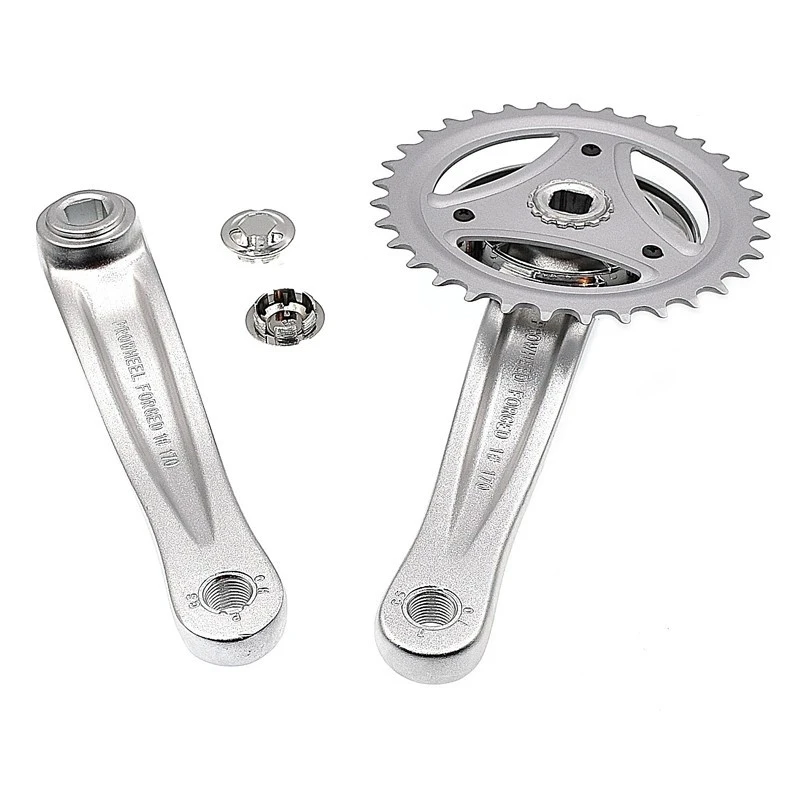 Ensemble Manivelle en Aluminium équipés de 33 dents avec enjoliveur chromé amovible.