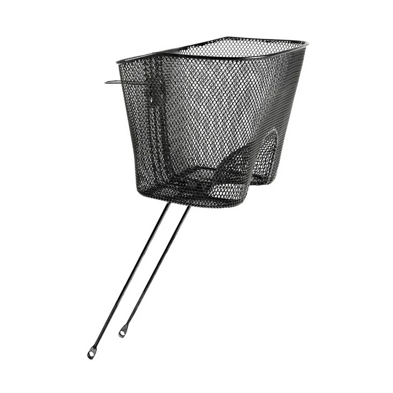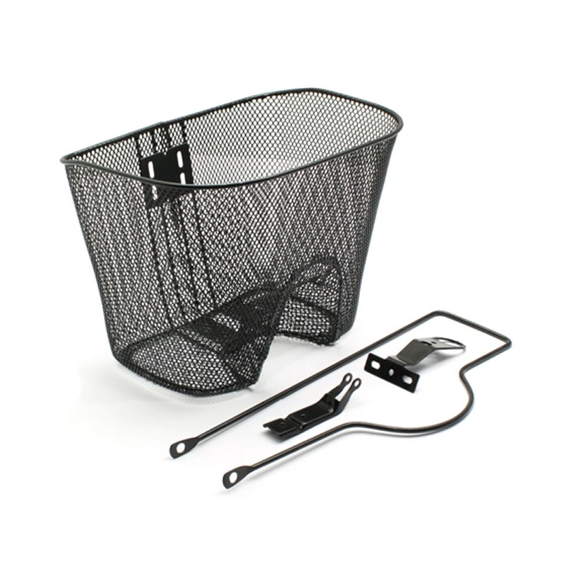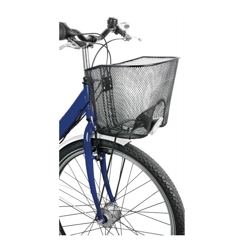 Le panier est conçu pour se monter à l’avant d’un vélo, fabriqué en fil d’acier noir, il est prévu pour recevoir un éclairage type projecteur.