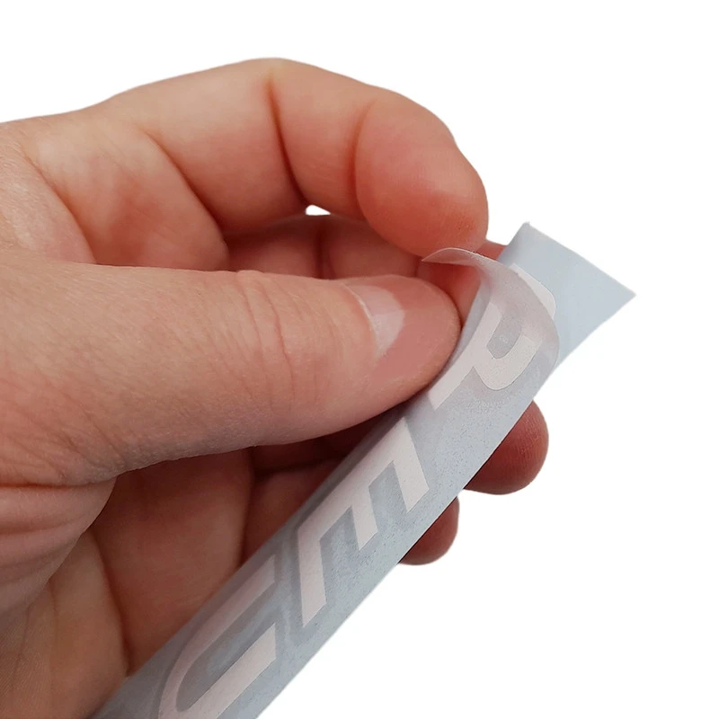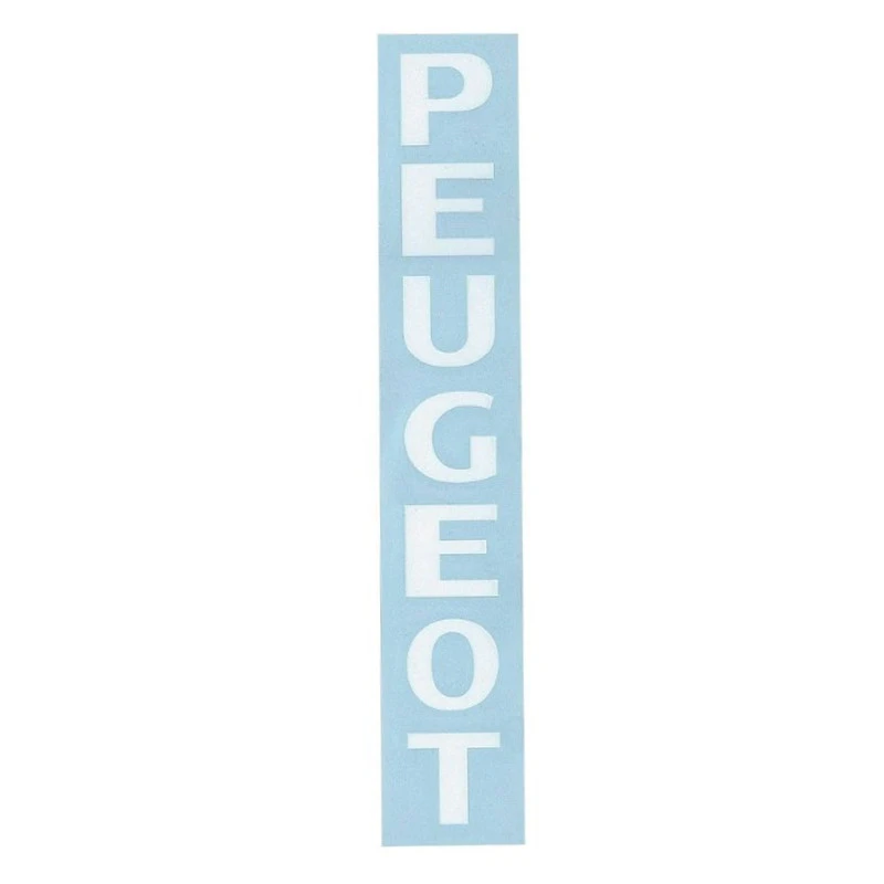 Autocollant marque PEUGEOT Blanc pour transfert sur Fourche vélo ou mobylette.