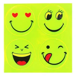 Ces petits visages souriants sont magnifiquement colorés et réfléchissants par temps sombre ou une fois la nuit venu. La couleur jaune fluo réfléchie la lumières des feux urbains et des automobilistes sur les sacs, sacoches, panier ou top case vélo lors du retour des enfants pendant les trajets scolaires.