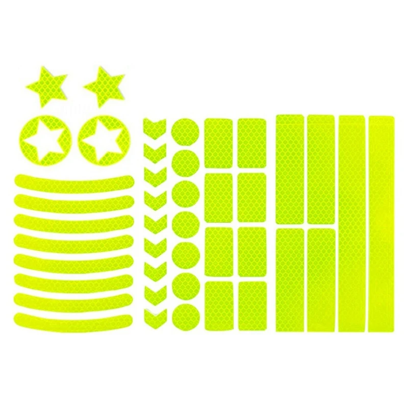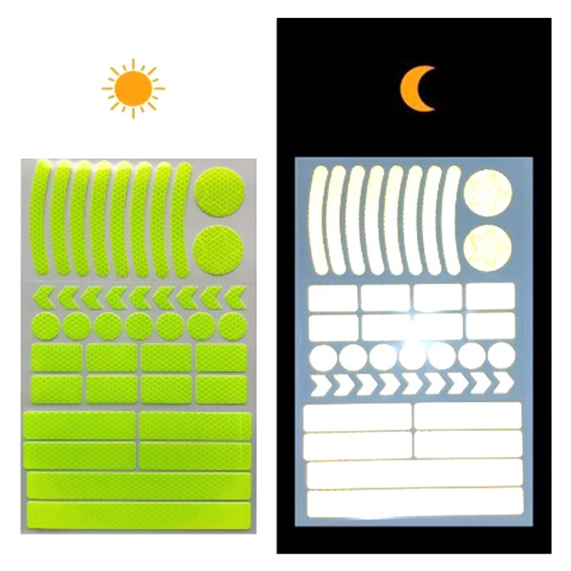 Ce lot de 42 patchs autocollants réflecteurs de lumière jaune fluo permet à tous cyclistes de matérialiser sa présence sur la route et voies cyclables par le collage de ses stickers brillants sur cadre, remorque vélo, top case, trottinette, poussette, fauteuil roulant ou toutes autres surfaces nécessitant d’être visbles dans le noir ou par temps sombres.