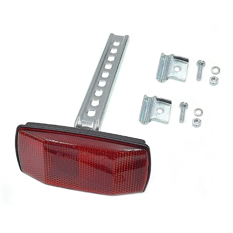 Ce réflecteur pour vélo sur porte bagage arrière réfléchit la lumière des phares des voitures, motos et scooters. avec sa longue patte en acier zingué de 150 mm de long, celle-ci rend le montage du catadioptre facile lorsque qu’un porte bagage ne dispose de plaque pour la mise ne place d’un réflecteur arrière.