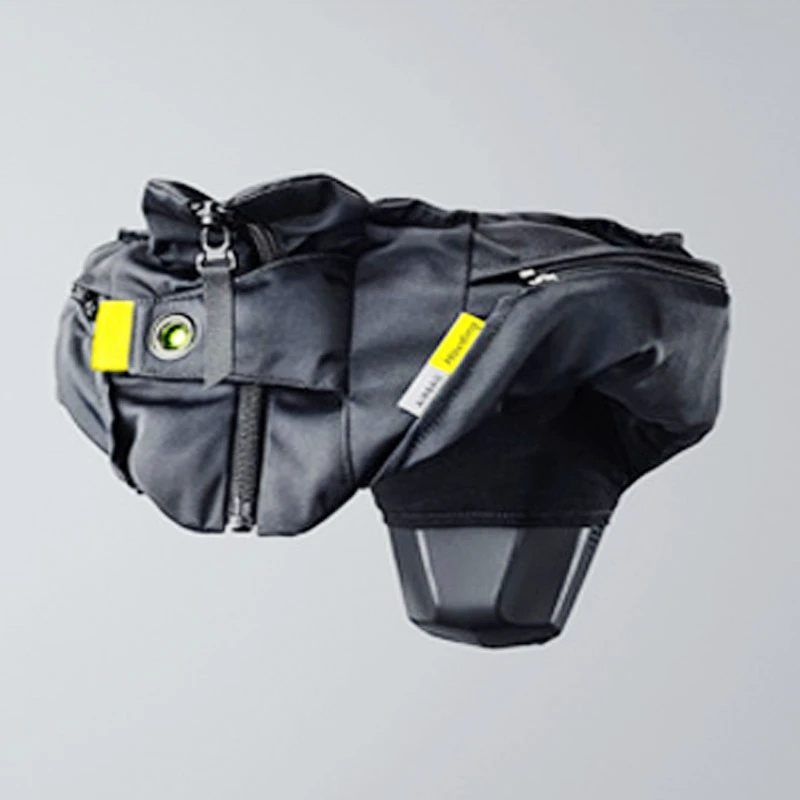 Facile à mettre en place et à retirer grâce à sa fermeture à glissière, l’airbag s’active facilement à l’aide d’un bouton. Le Hövding 3 ne pèse que 800 g, il est livré avec une housse en tissu noire protégeant le col des salissures et de l’usure.