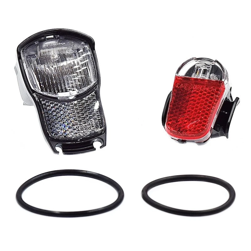 Ce kit de 2 éclairages homologué pour vélo permet d’équiper rapidement un 2 roues sans avoir recours à une dynamo. Les feux se fixent à l’aide des colliers en caoutchouc extensibles fournis sur les tubes du cadre du vélo (tube de selle, cintre, potence, fourche …)