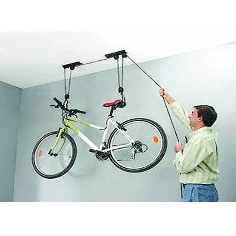 Cet accessoire de rangement porte-vélo ascenseur est très pratique puisqu’elle vous permet de suspendre votre vélo jusqu’à une hauteur de 4 mètres au dessus du sol dans un garage, un atelier, une buanderie et dans de nombreux endroits ou la place au sol peut parfois manquer.