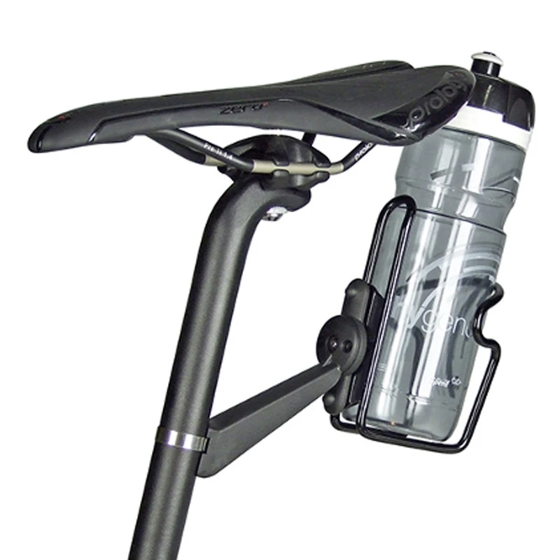 Cet adaptateur est compatible avec des porte-bidons standards en plastique ou en aluminium. Le support est orientable à l’horizontale et à la verticale en laissant un déport de 9 cm par rapport à la fixation sur la tige de selle.