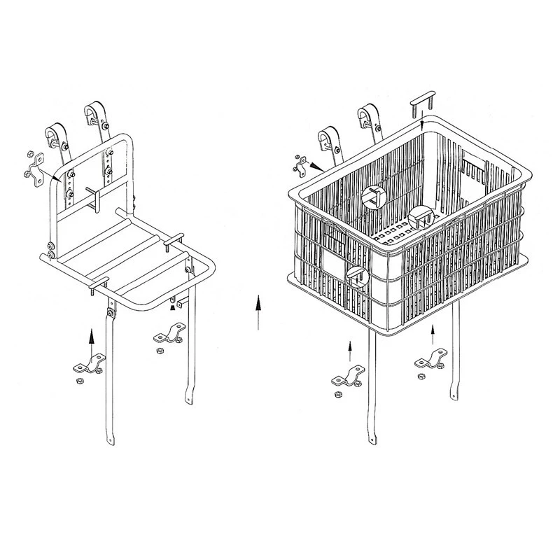 Ces attaches de montage Crate Mounting sont fabriqués en acier inoxydable, elles permettent de fixer un panier en osier de vélo ou une caisse en plastique sur la majorité des portes bagages.