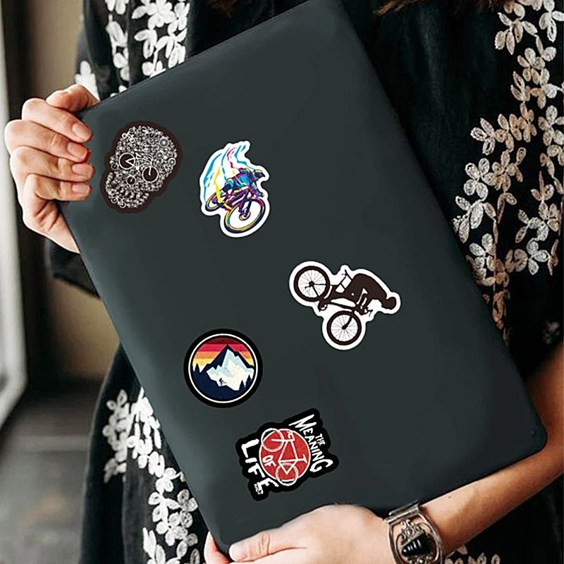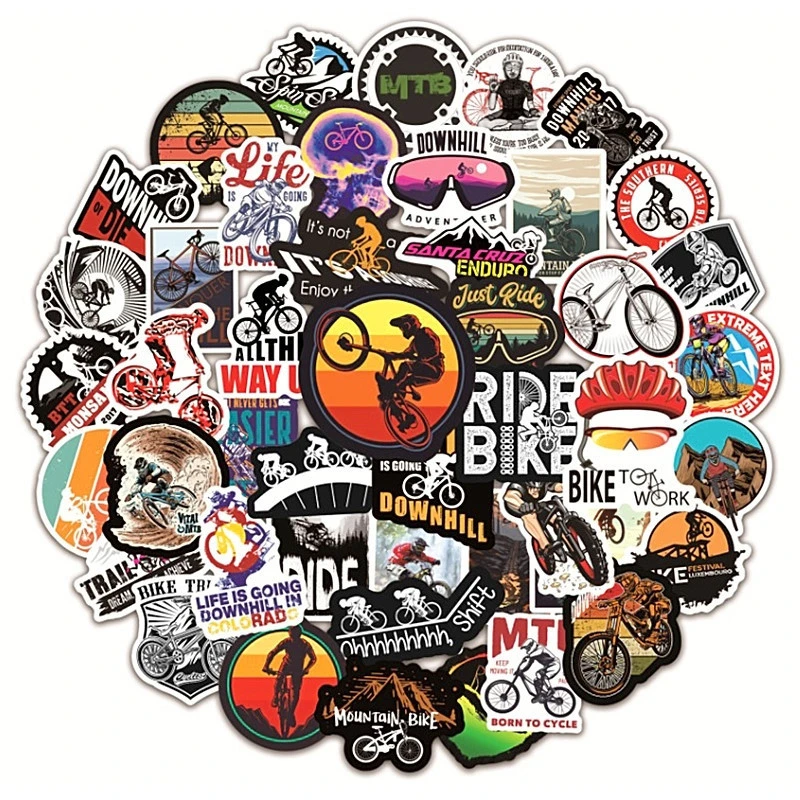 Le paquet comprend: différents modèles aléatoires dans le style vélo de montagne, VTT, BMX, vélo de descente, l’ensemble convient également pour la pose sur ordinateur portable, Graffiti, Vintage, décalcomanie, planche à roulettes, voiture, pare-chocs, Hoverboard, Snowboard, casque, bagages, réfrigérateur, coffre, mur, sol, lavabo, verre, tasse, étui à crayons, et toute surface lisse.