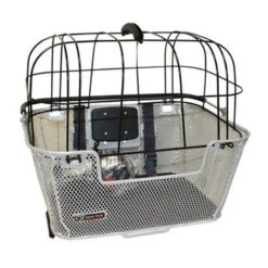 Panier pour guidon et porte-bagage avec couvercle cage démontable sur la partie supérieur pour le transport de petits animaux tel que chiens, chats, rongeurs …. La fixation peut s’articuler afin de mettre le panier bien à l’horizontal ou avec un angle différent.
