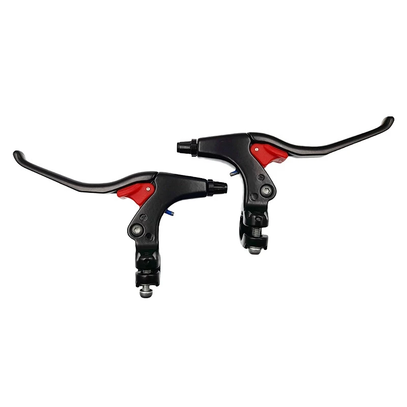 Cette paire de levier de frein pour vélo avec collier à montage rapide s’adapte pour tous types de frein à tirage latéral et permet le remplacement d’une manette d’origine pour actionner un frein cantilever ou frein v-brake sans avoir à retirer la poignée en caoutchouc et la poignée de dérailleur.