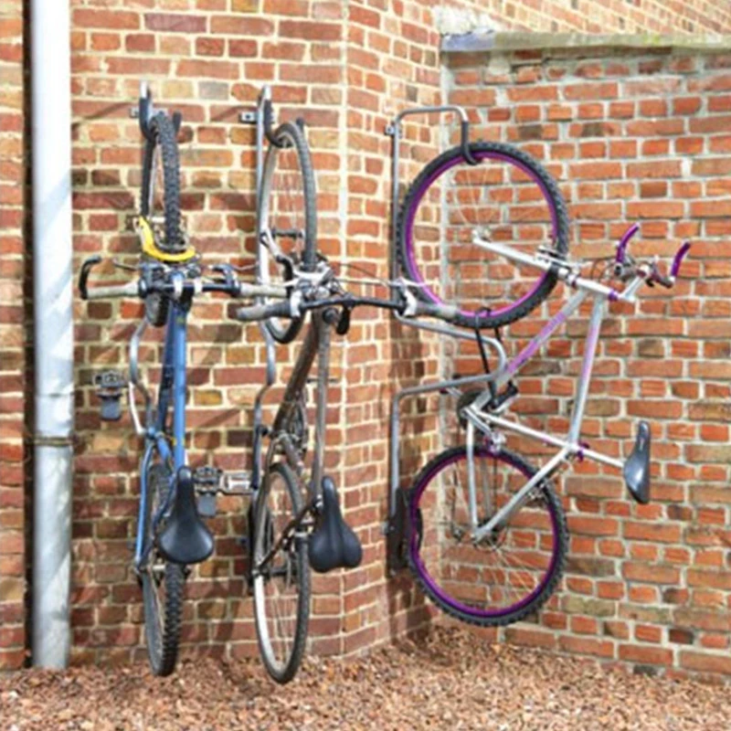 Le range vélo mural individuel avec crochet revêtu de caoutchouc de la marque Mottez permet de suspendre un vélo par la roue avant pendant que la roue arrière reste bloquer dans un sabot, offrant la possibilité d’ajouter un antivol vélo pour sécuriser le rangement du cycle.