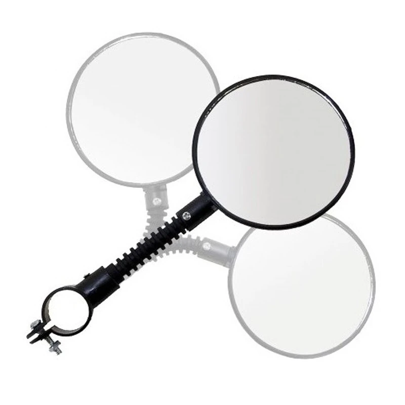 Rétroviseur 3D d’appoint en plastique sur bras articulé avec bague de fixation à serrage par vis cruciforme.