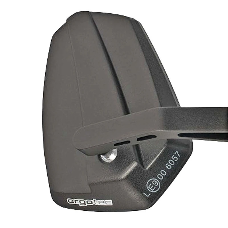 Le rétroviseur Ergotec M-77 offre un large champ de vision puisqu’il dispose d’un grand miroir de 120 x 80/55 mm orientable à 360° de quoi bien voir ce qu’il se passe dérrière soi et prévenir des dangers sur la route. Un pastille convexe à fixer sur le miroir permettant d’augnmenté la visibilité, et disponible en produit complémentaire.