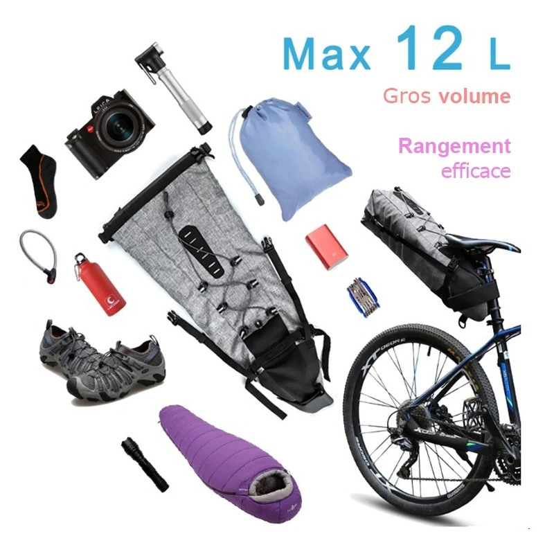 Cette sacoche de bikepacking offre un volume de rangement de 12 L pour des dimensions de 59 x 16 x 13 cm.