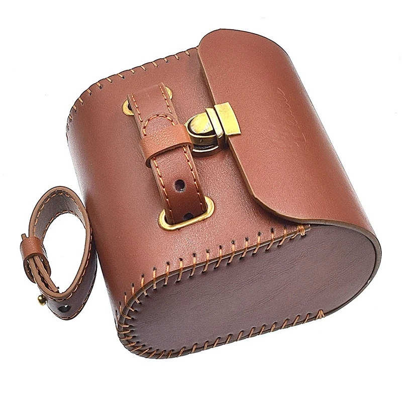 Cette saccoche de selle en cuir véritable de couleur brune avec fermture à boucles et pression permet de ranger ses affaires personnelles à l’arrière de la selle du vélo.